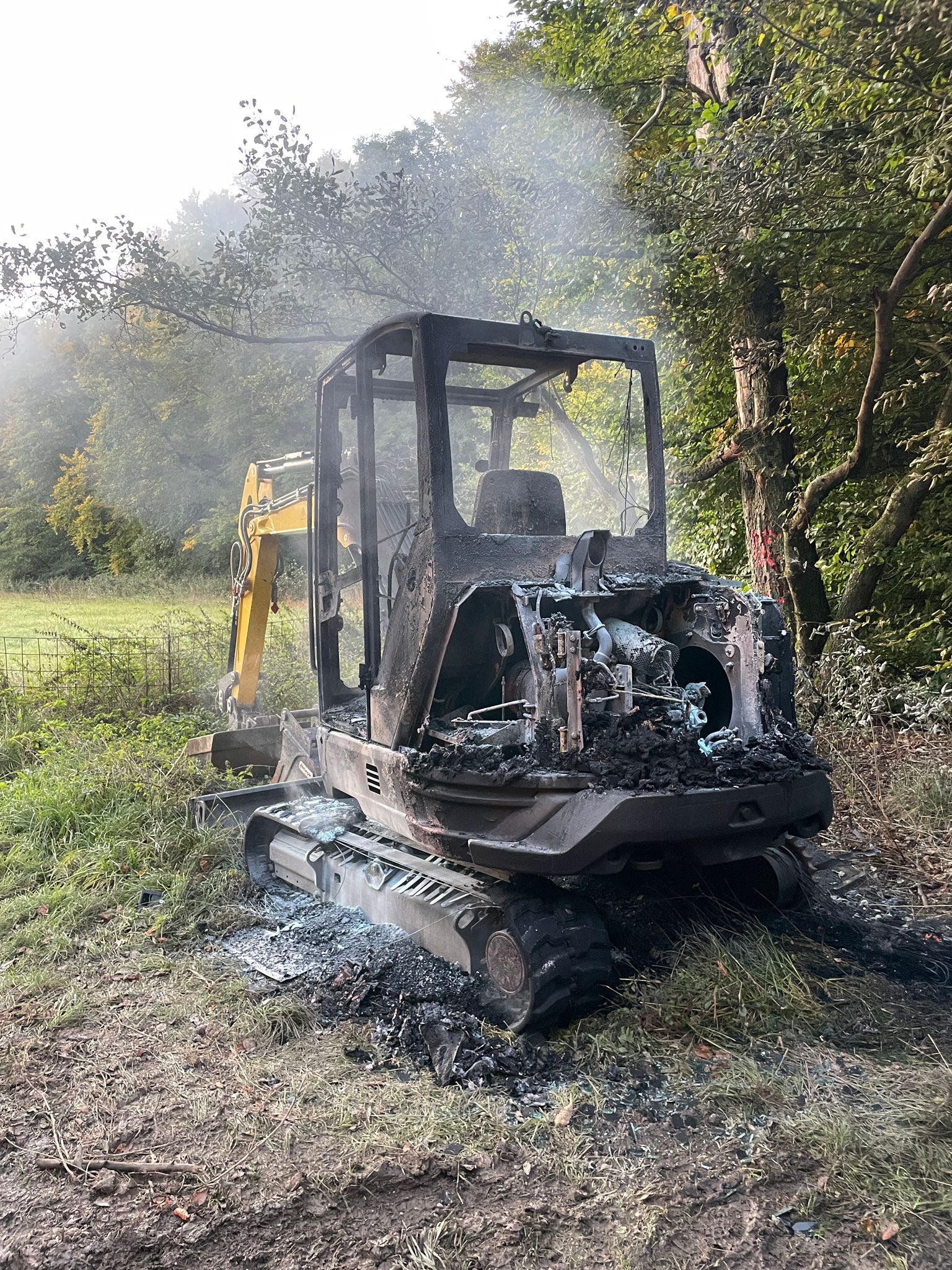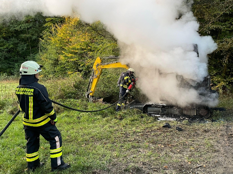Vor Ort wurden wir vorbildlich von Hessenforst und der betroffenen Firma zur Einsatzstelle eingewiesen. Es brannte ein Bagger, den wir unter Atemschutz ablöschten.