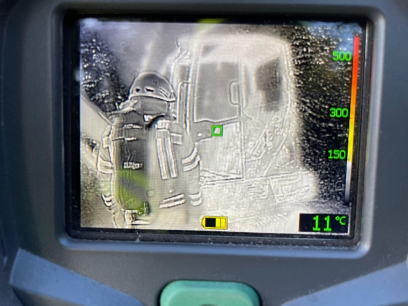 Anschließend kontrollierten wir mit Hilfe der Wärmebildkamera, ob das gelöschte Fahrzeug noch Glutnester enthält. Nachdem dies ausgeschlossen werden konnte, war unser Einsatz beendet und wir konnten wieder einrücken. Die Polizei übernahm zur Klärung die Einsatzstelle.