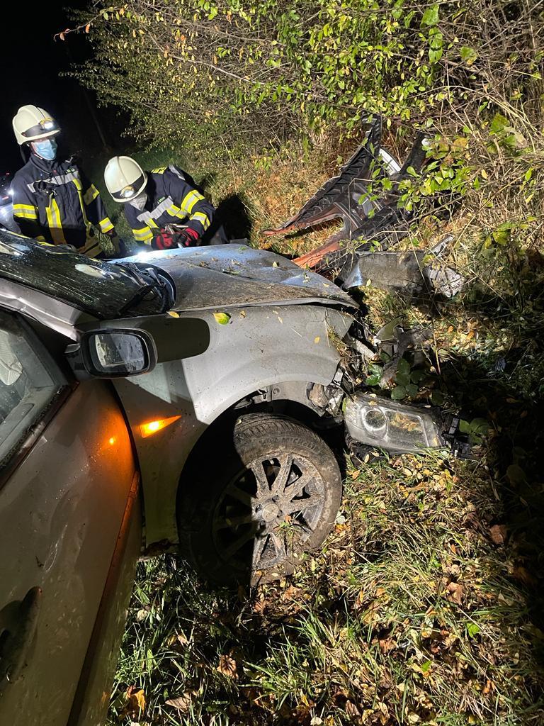 Aus ungeklärter Ursache ist ein Fahrzeug von der Straße abgekommen. An der Einsatzstelle angekommen, sperrten wir die Straße ab und kümmerten uns um die verunfallte Person, bis der Rettungsdienst vor Ort war. Außerdem klemmten wir bei dem Fahrzeug die Batterie ab, reinigten die Fahrbahn und sammelten die Fahrzeugteile ein.