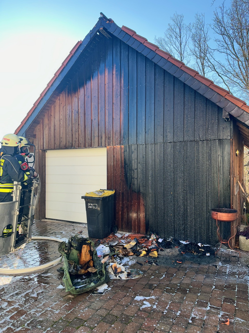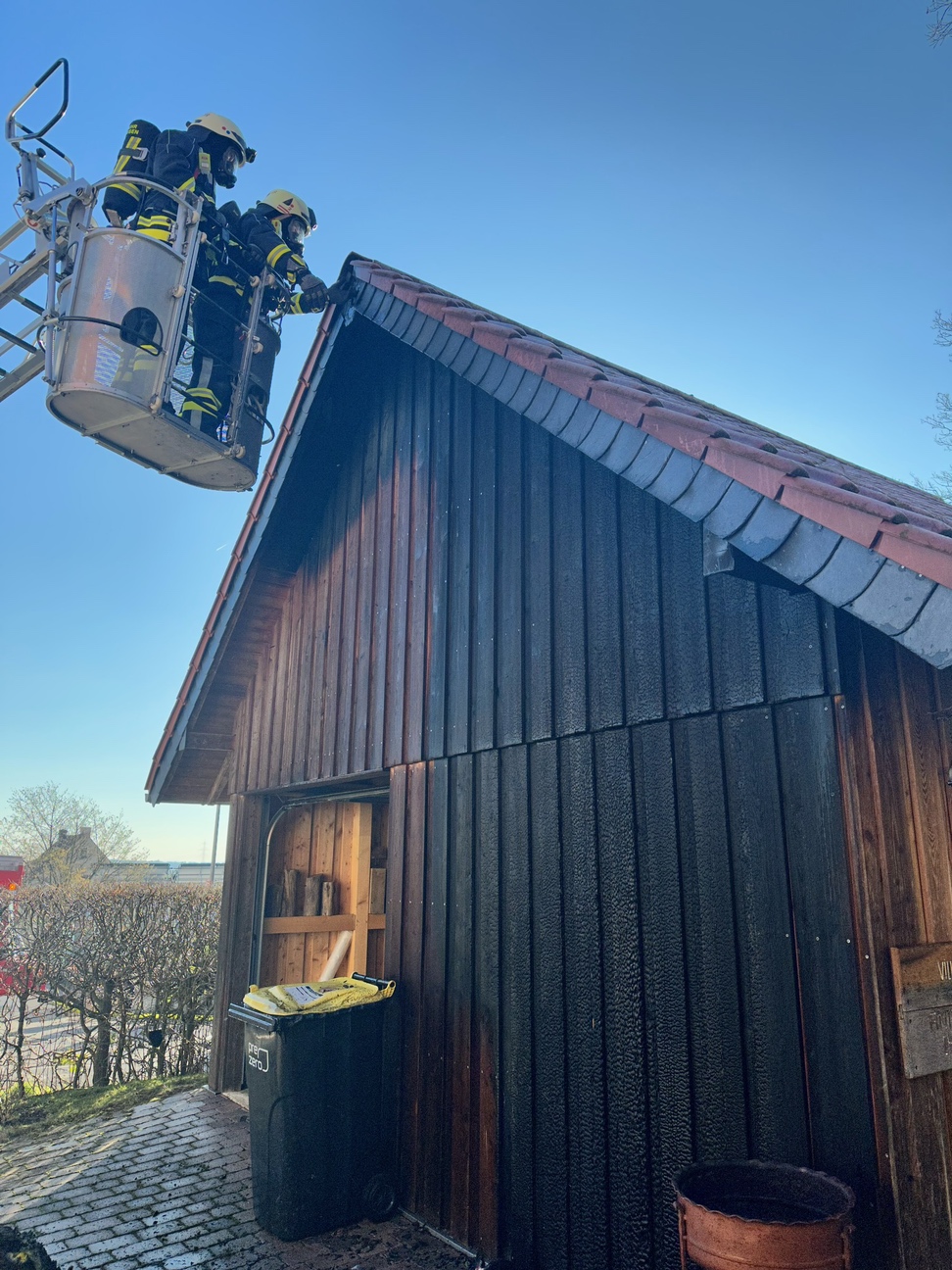 Von dem Hauseigentümer wurden bereits Löschversuche mit dem Gartenschlauch erfolgreich durchgeführt und so konnte ein noch größerer Schaden verhindert werden.
