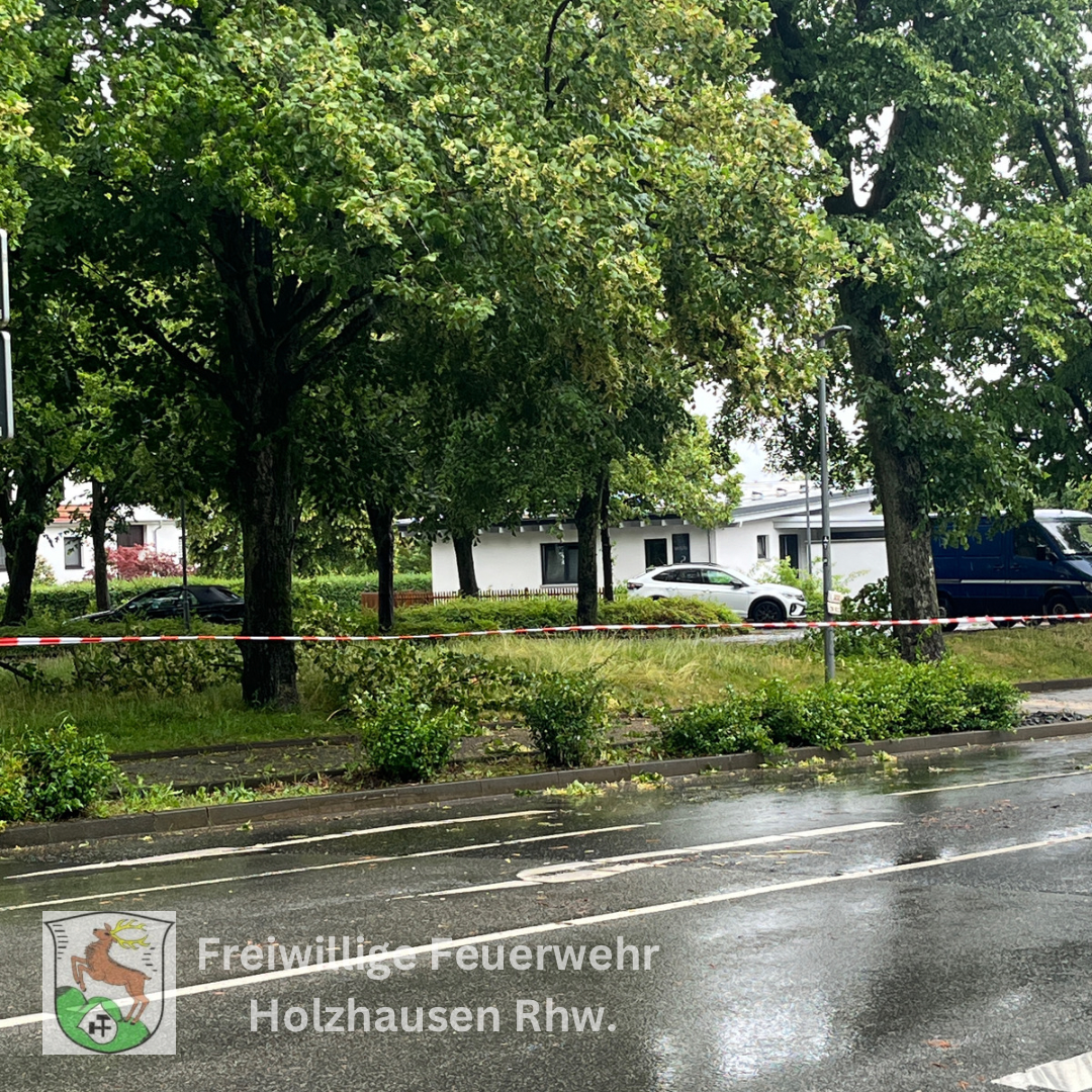 An der Einsatzstelle drohte ein angebrochener Ast auf die Fahrbahn und den Fußweg zu fallen. Wir sperrten einen Teil der Fahrbahn ab, während ein Mitarbeiter vom ZKD den Ast entfernte.