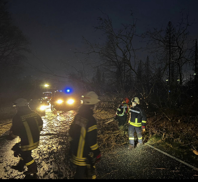 Am Freitag um 17:53 Uhr ertönten unsere Pager zum ersten Mal an dem Abend mit dem Alarmstichwort H1/Unwetter. Wir fuhren auf die L3232 im Gutsbezirk Reinhardswald. Dort lag ein Baum auf der Fahrbahn. Wir mussten die Straße für die Dauer des Einsatzes voll sperren. Mit Hilfe der Kettensäge beseitigten wir den Baum von der Fahrbahn. Nach ungefähr 30 Minuten konnten wir die Straße zwischen Holzhausen und dem Udenhäuser Stock wieder freigeben.