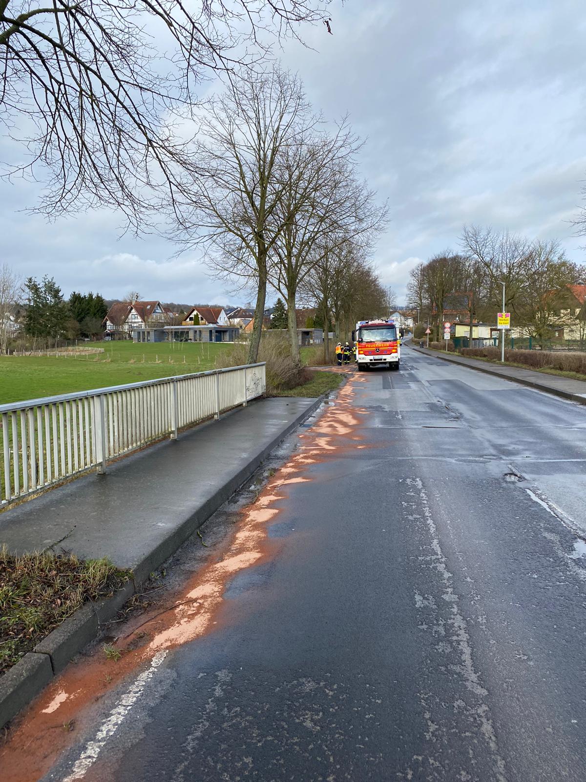 Wir wurden zu einer Ölspur in die Kasseler Straße alarmiert. Beim Eintreffen an der Einsatzstelle stellten wir fest, dass sich die Ölspur über die Kasseler Straße bis hin zur L3233 (Landstraße Richtung Immenhausen) erstreckte.